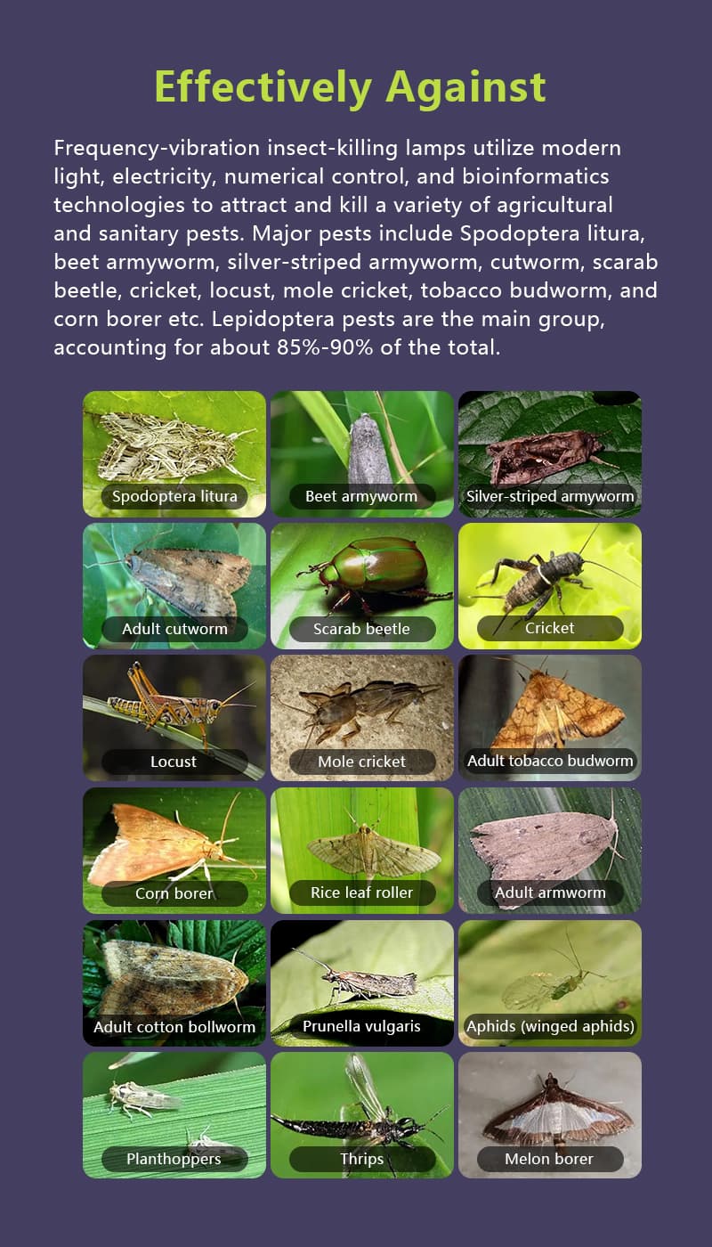 1. Self-developed mosquito-attracting light system significantly improves insect control efficiency, effective against over 1000 pests.
