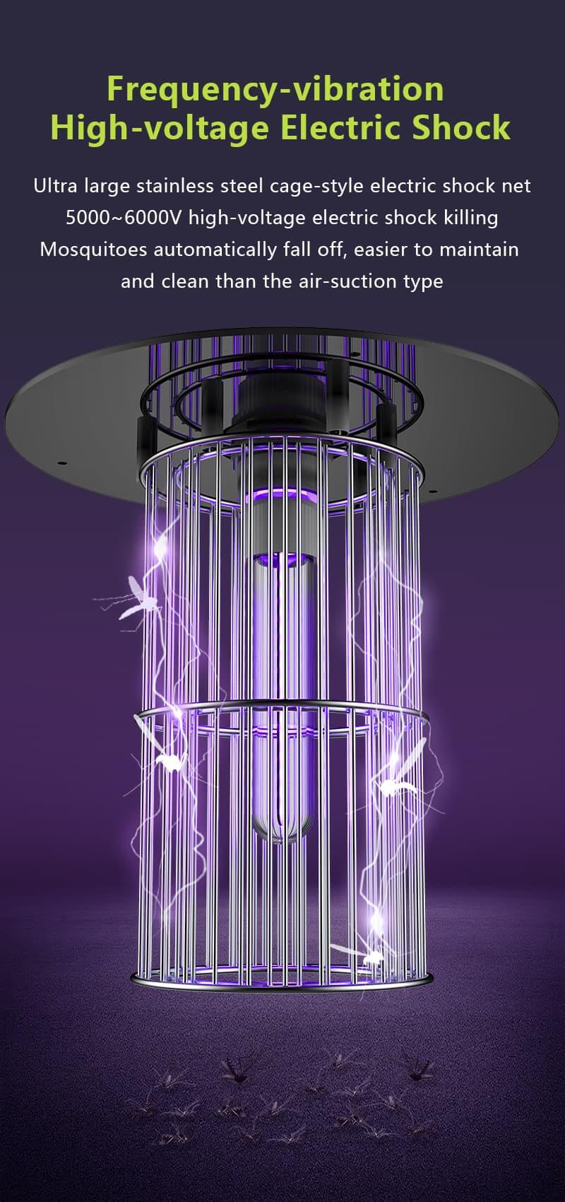 5. 6000V high-voltage electric shock output with a large stainless steel cage-style electric shock net, effective against large harmful moths and insects.