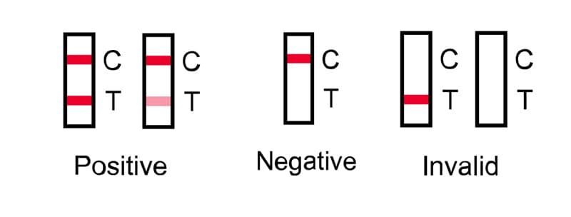 Positive: If two colored bands appear with one colored band in the Control Zone (C) and another in the Test Zone (T) within 15-20 minutes, the test result is positive.
