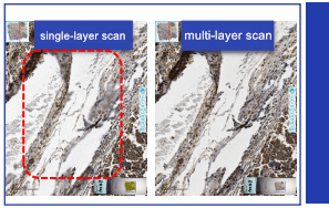 When shooting thick tissue (about 20 μm) or uneven tissue, each focal plane can only image a part of the area, and cannot capture a complete image at the same time. After the sample is layered and imaged through the Z-stack imaging and depth of field expansion function, the multi-layer images are fused to automatically select the clearest area, thereby showing a complete image of all uneven tissues in one image.