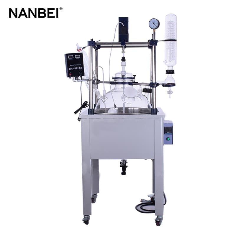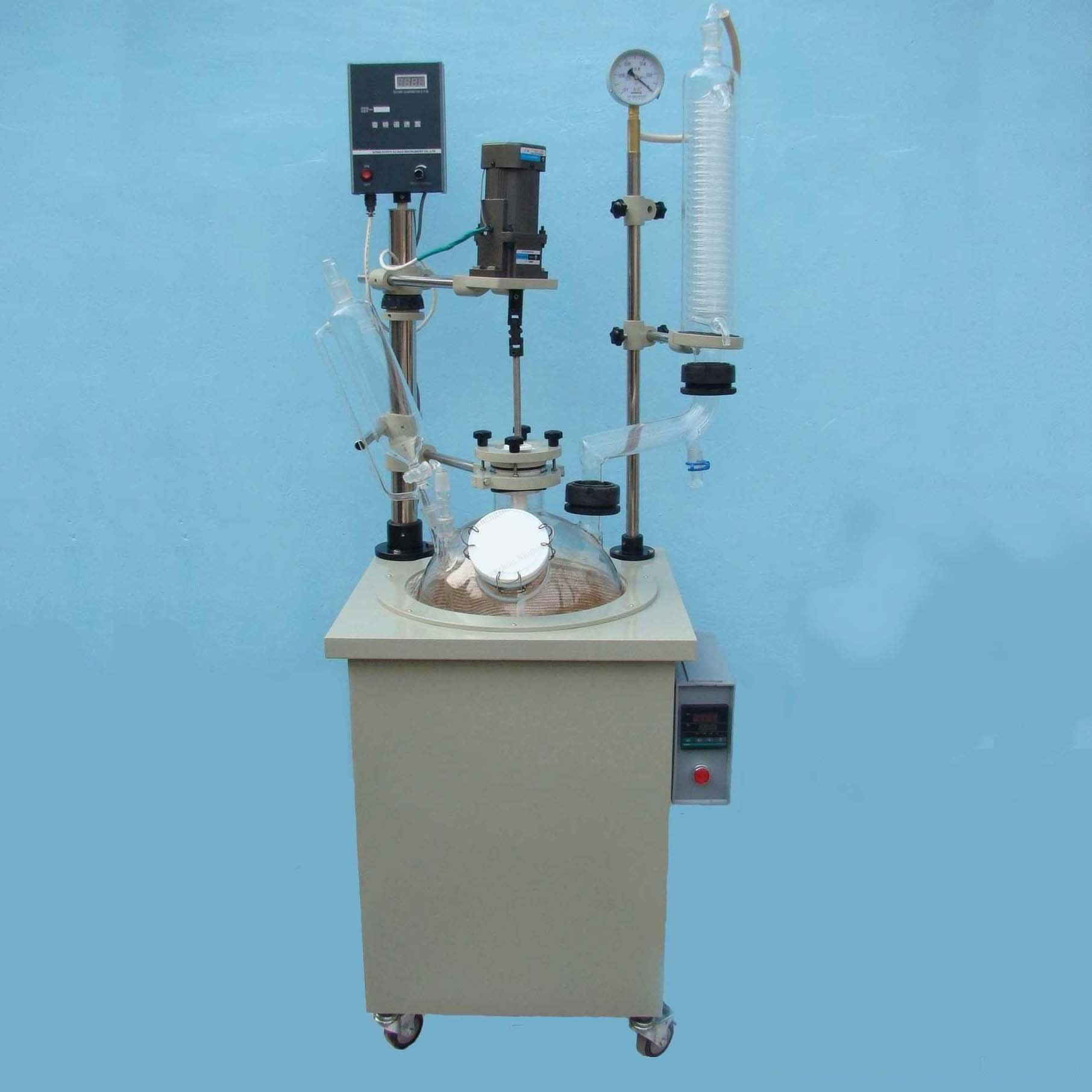 Single glass reactor inner placed reaction solvent which can be stirred, interlayer can be filled with cold or hot liquid(frozen liquid, water, gas or hot oil) to do the thermostatic heating/cooling reaction, single layer glass reaction kettle is heated by computer control oil bath or electric heating. At the same time, it can be worked at atmospheric pressure or vacuum state, to control the reaction solution reflux and distillation, it is the ideal equipment for modern synthesis chemical, biological pharmaceuticals and making new materials, used for preparation experiment and production equipment.