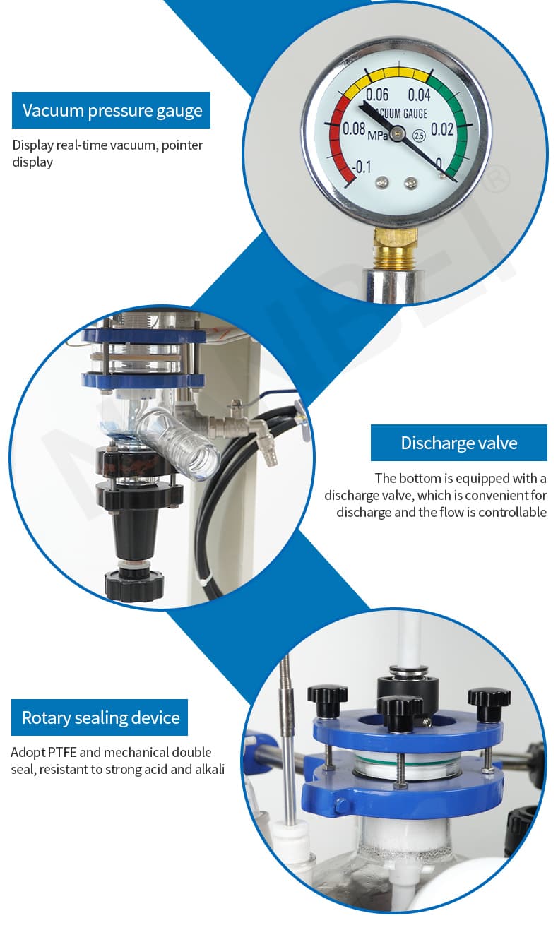 6. The PTFE discharge valve without dead corner, solid material/liquid material can be easily released from the bottom;
