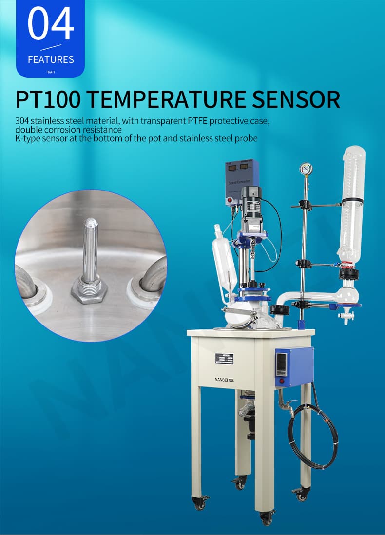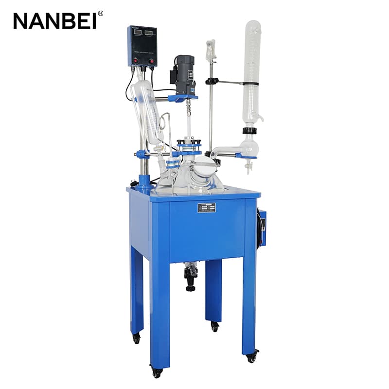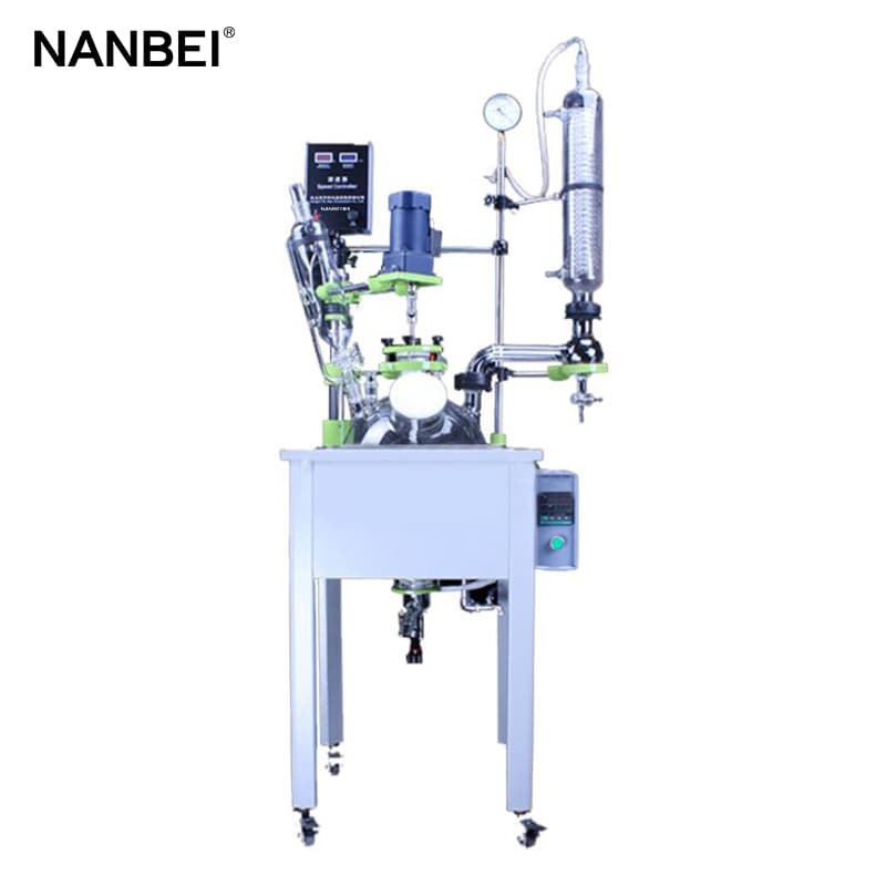 Single glass reactor inner placed reaction solvent which can be stirred, interlayer can be filled with cold or hot liquid(frozen liquid, water, gas or hot oil) to do the thermostatic heating/cooling reaction, single layer glass reaction kettle is heated by computer control oil bath or electric heating. At the same time, it can be worked at atmospheric pressure or vacuum state, to control the reaction solution reflux and distillation, it is the ideal equipment for modern synthesis chemical, biological pharmaceuticals and making new materials, used for preparation experiment and production equipment.