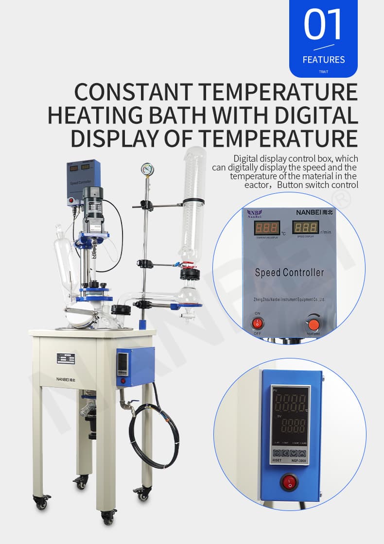 Under the condition for setting the constant temperature, in a closed glass container, at atmospheric pressure or negative pressure by stirring, reaction, it can control the reaction solution's evaporation and reflux.
