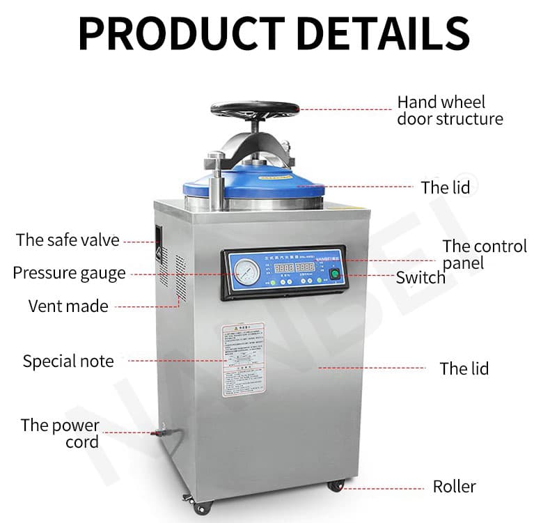 5.Auto discharge the cool air,and steam discharging auto matically after sterilization