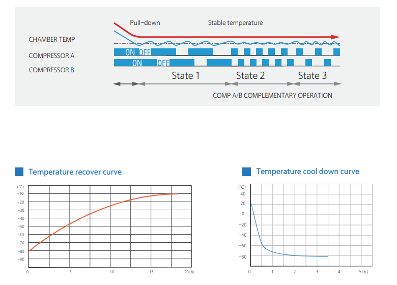 Usually takes an average of three hours to reach -81℃ at 25℃ ambient.The faster pull down,the safer for the samples