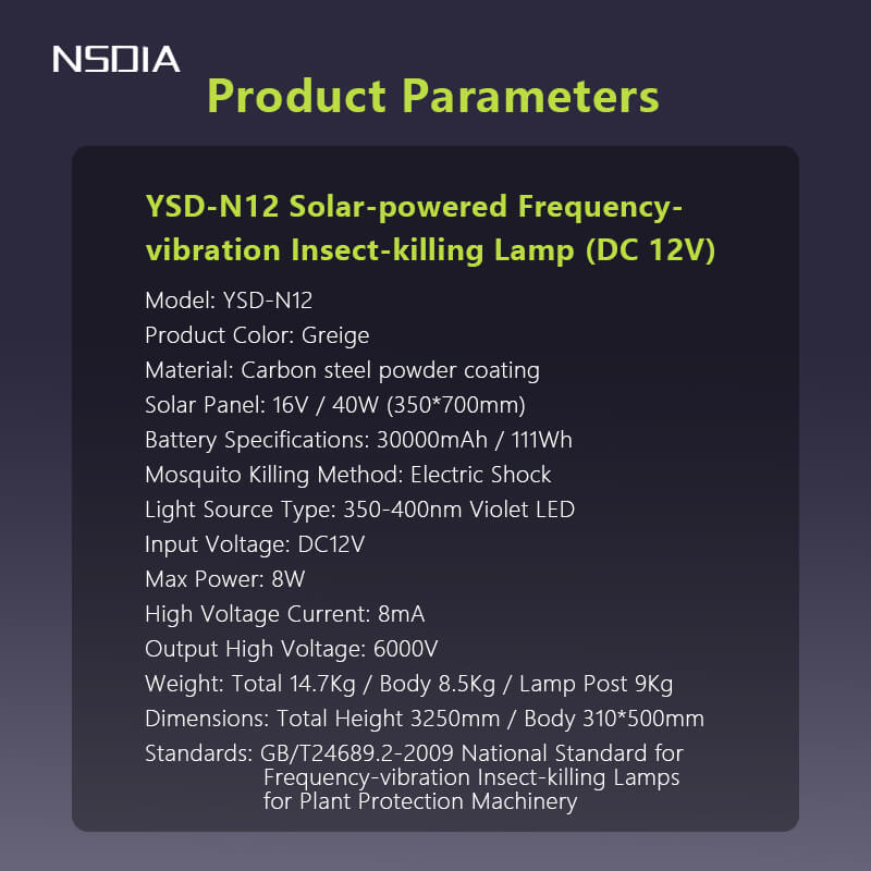YSD-N12 Solar-powered Frequency-vibration Insect-killing Lamp is suitable for agriculture and forestry,