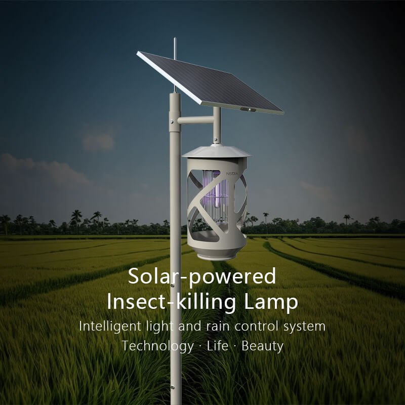 6. Intelligent light and rain control system, no manual control required, automatically charges during the day, automatically kills insects at night, and automatically cuts off power for protection in rainy weather.