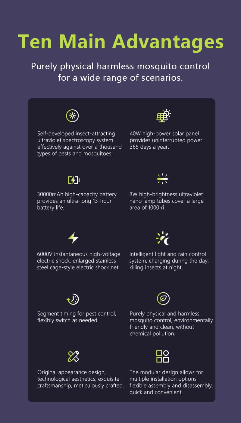 8. Purely physical and harmless mosquito control, environmentally friendly and clean, without chemical pollution.
