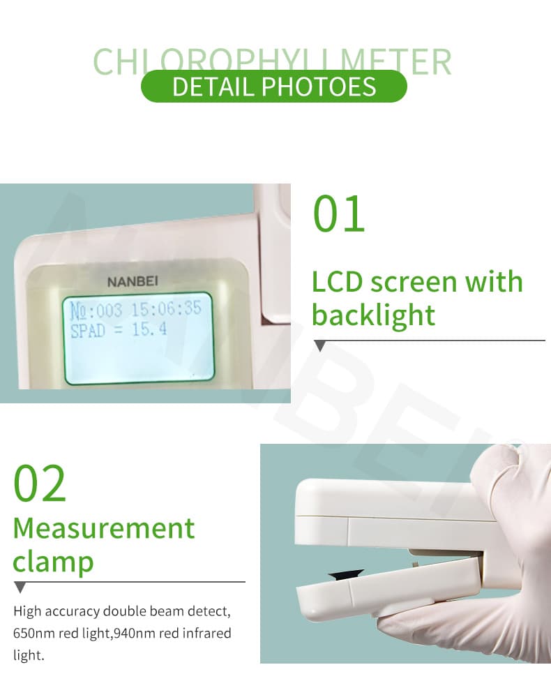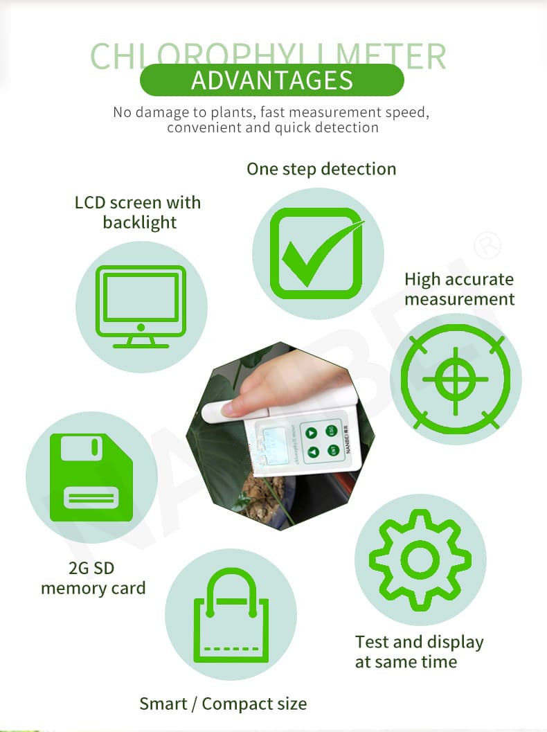 Chlorophyll Meter can measure chlorophyll content of plants. Chlorophyll content and leaf nitrogen content have a very close relationship. Thus, chlorophyll content can reflect plants demand for nitro. Using the instrument can do go to put nitrogen fertilizer reasonably, improve utilization of nitrogen and protect environment.