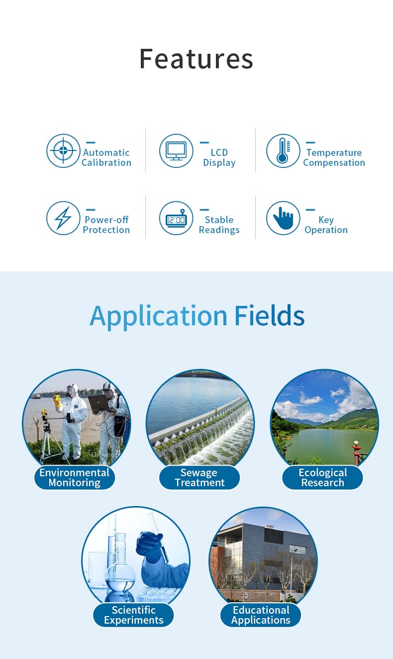 2. There is manual and automatic tempearture compensation, which can be choose. It needs to equips a temperature electrode if user want automatic tempearture compensation.