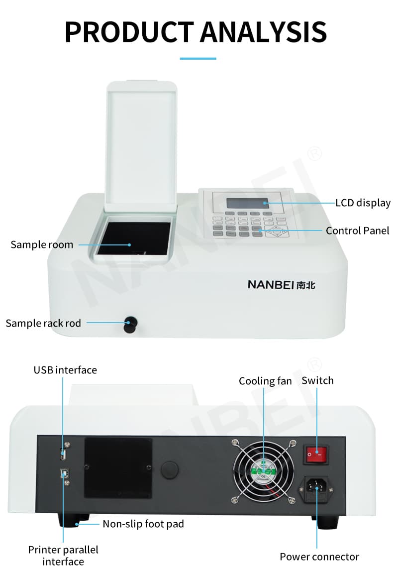 ●Data processing is convenient: can store up to 1000 groups of experimental data, optional built-in and external printer output, or optional NANBEI spectrum analysis software package and connected to the computer, to achieve more data processing and analysis functions.