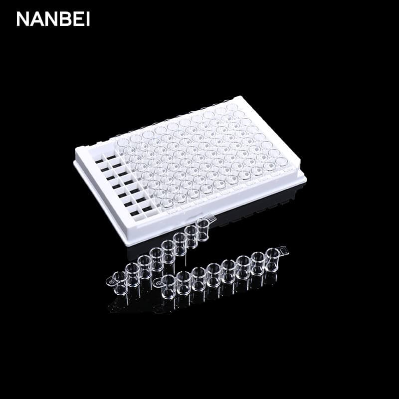 504201 | detachable | 8 wells * 12 strips | high binding | clear wells + white frame | 50 plates/case |