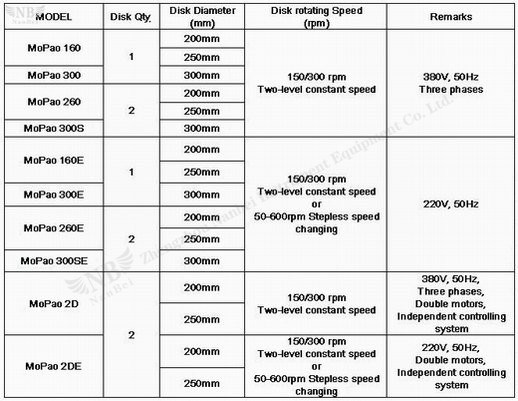 6. No matter for single disk or double disks machine, the stepless speed changing or constant several speeds working conditions are both optional for customer.