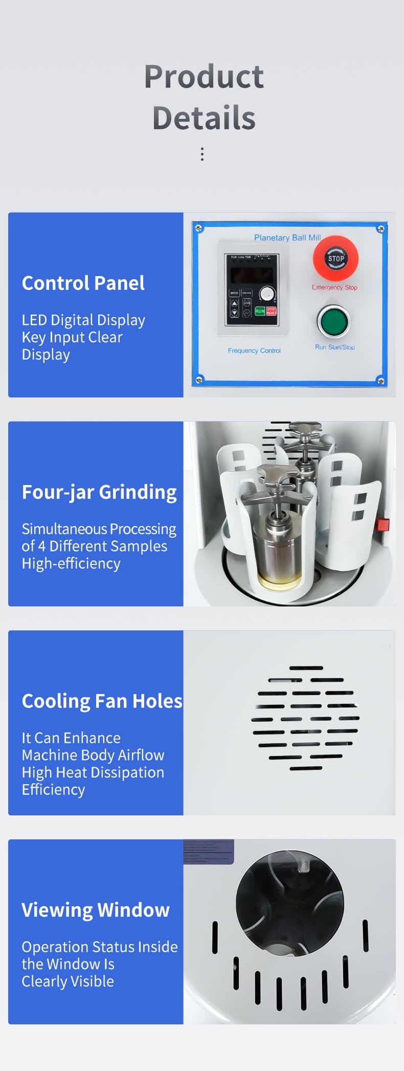 NXQM series planetary ball mill is the requisite equipment for mixing, fine grinding, small sample preparing, new product development and small volume high-tech material production. The product has small volume, complete function, high efficiency and low noise. It is the ideal facility to acquire research samples for research institutes, universities as well as enterprise laboratories (can acquire four samples in one experiment). If mated with vacuum ball milling tanks, it can grind samples in vacuum status. The product is extensively applied to in the fields of Geology, Mining, Metallurgy, Electronics, Construction Material, Ceramics, Chemical Engineering, Light Industry Medicine, Environmental Protection etc.