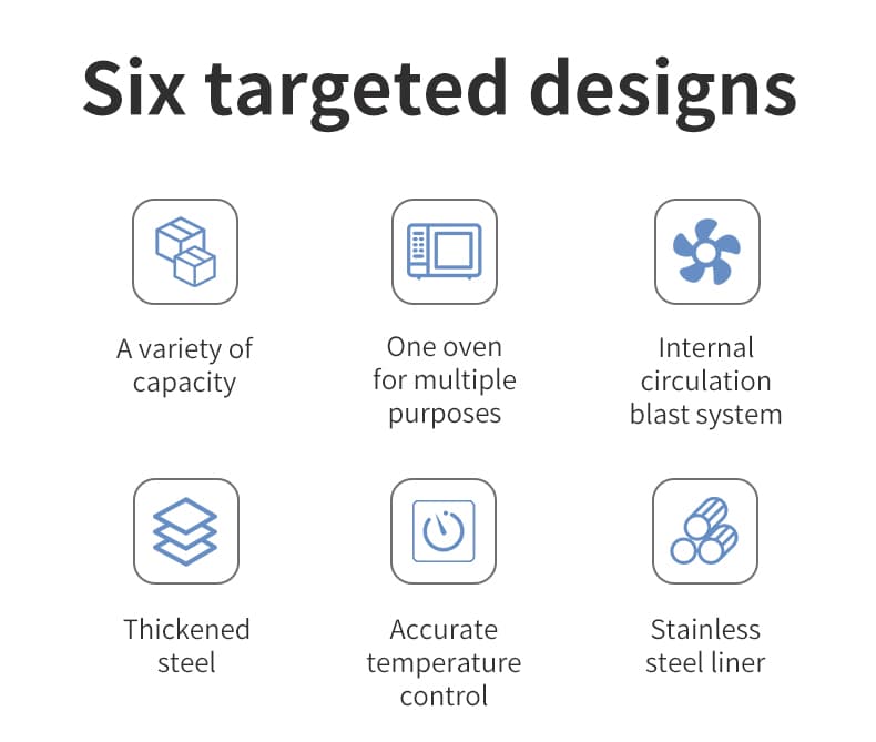 3. All-round three-dimensional heat, fan forced circulation, high-precision temperature regulation, to ensure that the work of the indoor temperature has a good homogeneity.
