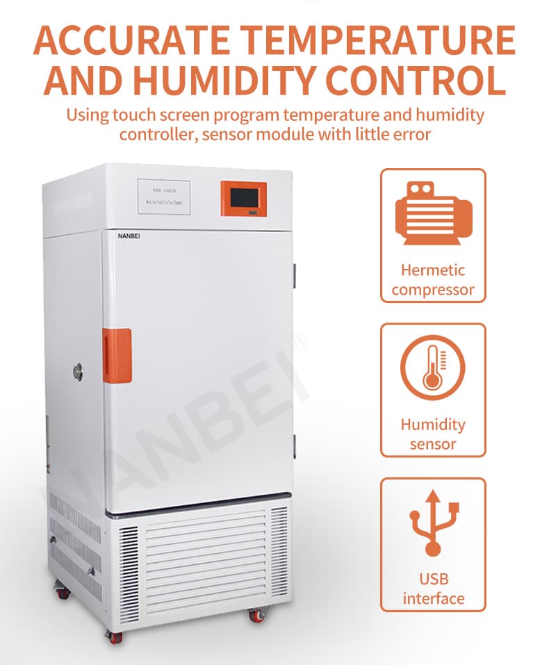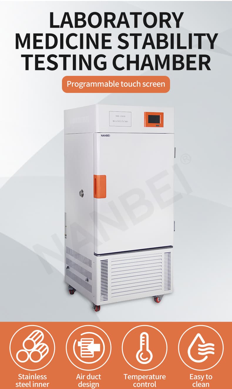 Adopt balance temperature and humidity adjusting method, select imported unclosed industrial compressor, humidity sensor, touch-screen programmable controller (1-99 sections), recorder etc for deploy medicine stability test box, they are stable, safe and reliable
