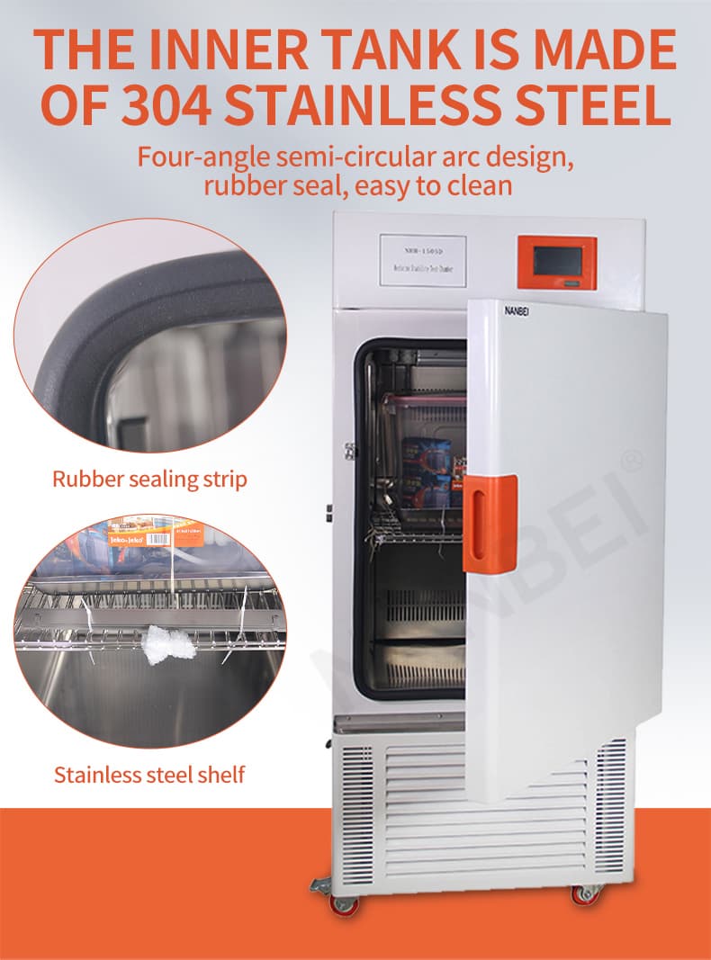 1. adopted 304 standard of stainless-steel chamber, semicircular arcs at comers for easy cleaning