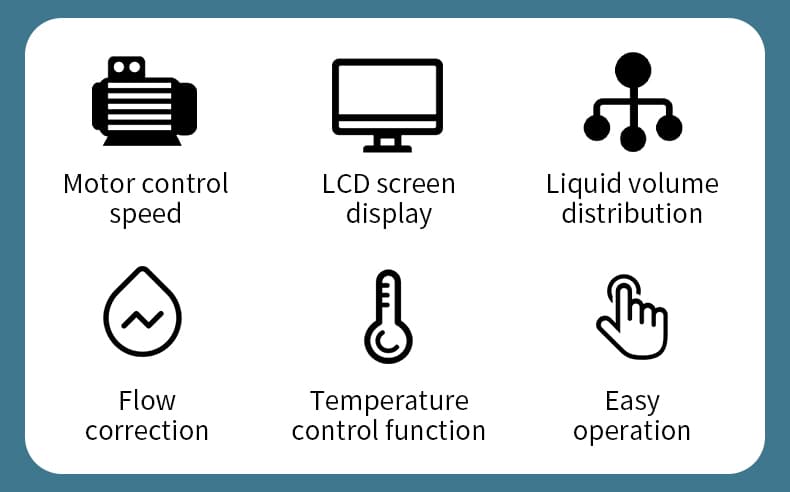 • Three types of distributing mode: time dispensing mode; volume dispensing mode; copy dispensing mode are available.