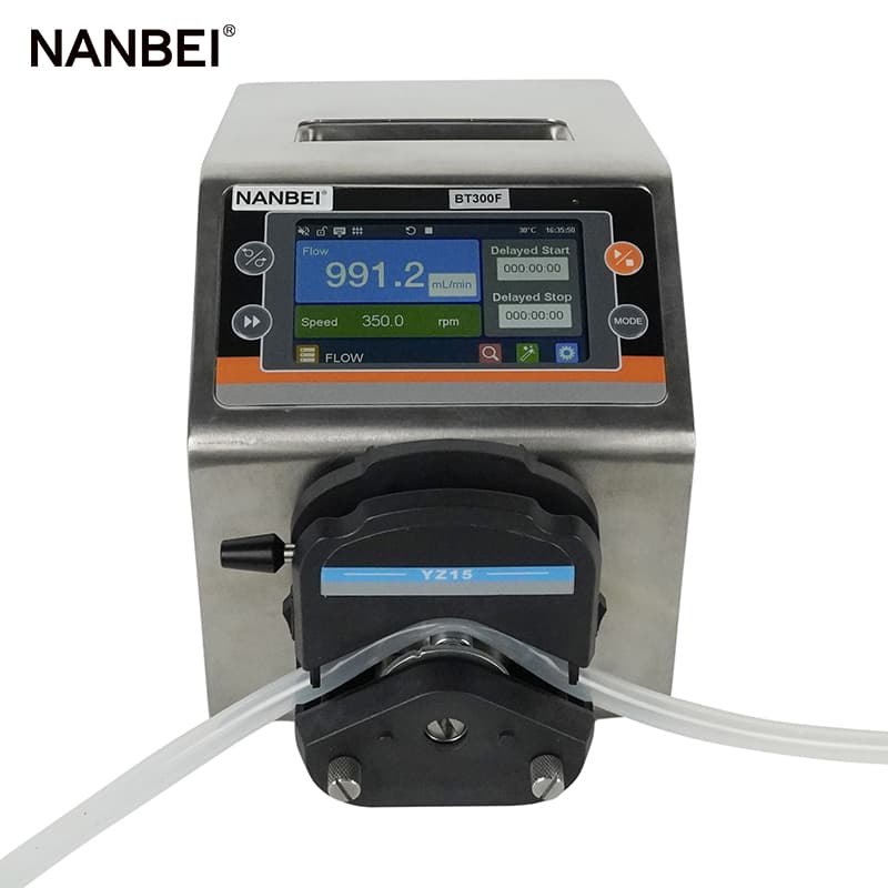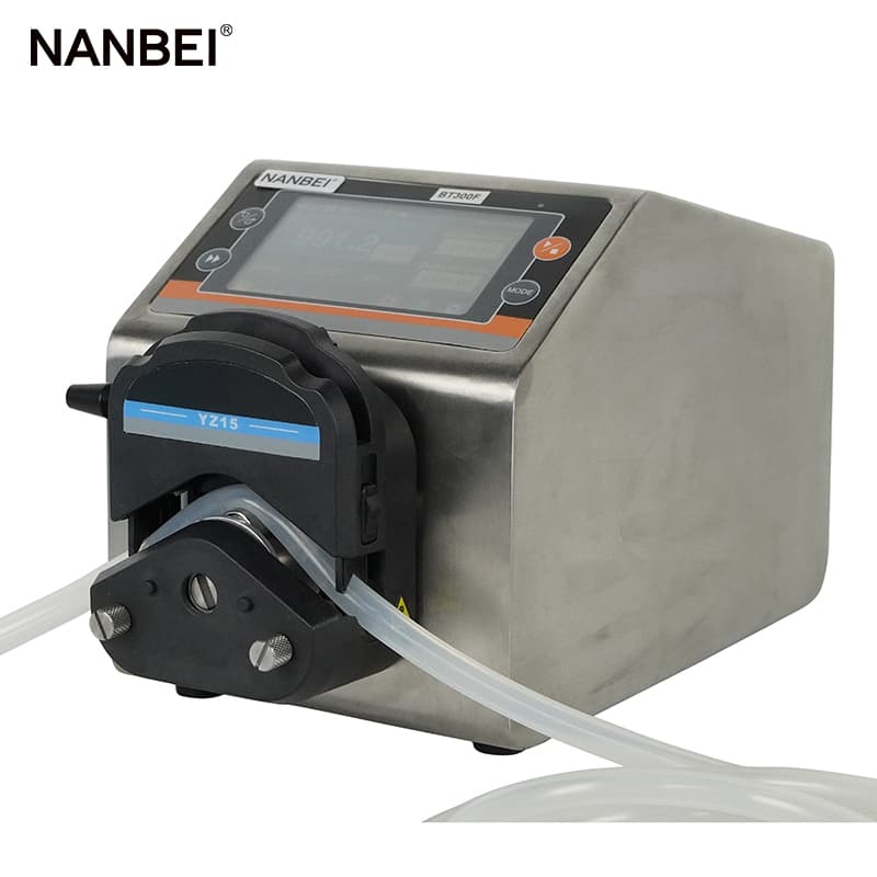 BT300F Intelligent dispensing peristaltic pump flow range:0.006-1340ml/min.It adopts color LCD touch screen with intuitive and clear displaying interface, easy to operate. Mainly used for accurate measurement and distribution of fluid. If need high accuracy when dispensing, volume dispensing mode is available; if need high producing efficiency, time dispensing mode is more convenient; if want to separate fluid to number of equal parts, copy dispensing mode would be best. When working on flow mode, it is as same as intelligent flow peristaltic pump. The pump adopts intelligent temperature-control technology to reduce working noise. RS485 interface, as adopting the MODBUS communication protocol, the pump is easier to be connected with other equipments, such as computer, human machine interface and PLC.