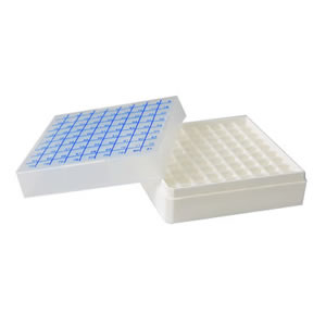 Polypropylene 81 or 100 cell 2”boxes hold most popular cryo and cold storage vials and fit into standard freezer racks. These boxes offer a convenient and cost effective alternative to polycarbonate boxes for storage of samples. Boxes have clear lids with locator grid to facilitate sample identification. Polypropylene boxes are designed to withstand temperature down to -80℃. Storage of polypropylene boxes in liquid nitrogen is not recommended. Boxes have drain holes for venting and safety. Keyed lid prevents misalignment of grid.