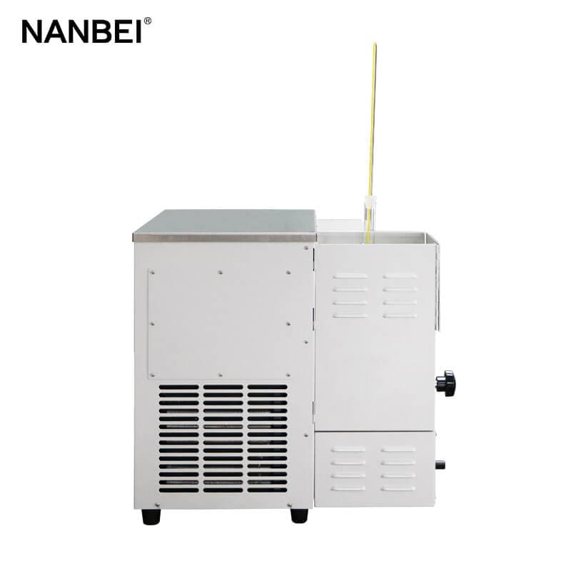 4.The refrigeration bath is made of stainless steel. It contains heating device, refrigeration device, temperature measuring device and stirring device. The stirring device is driven by a motor.